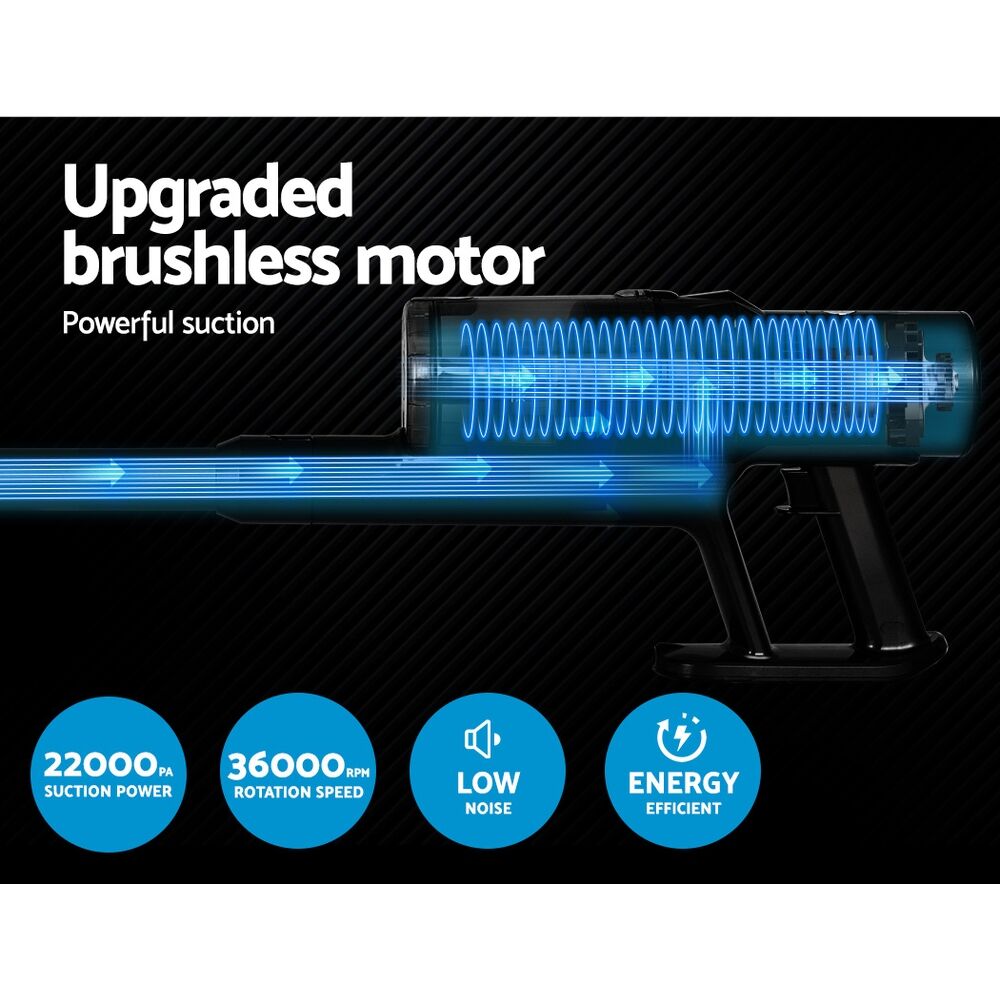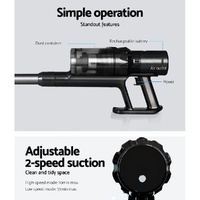 $148.49With its powerful suction and convenient design, Devanti handstick vacuum cleaner lets you keep your hard floor clean easily and achieve a tidy-looking space. It features a soft roller that is gentle on hard floors but tough on dirt and dust, and the upgraded brushless motor makes for powerful suction with adjustable two-speed modes. It also produces low noise and is energy efficient. Additionally, the vacuum cleaner is powered by a 2000mAh rechargeable Li-ion battery, which ensures a long run time. It also has a swivel vacuum head, tilt and angle adjustment, and flexible stick movement for maneuverability, good control, and easy cleaning in tight spaces, and the portable and lightweight design makes it easy to carry around. For added convenience, this Devanti vacuum cleaner is cordless and bagless. It comes in one package and includes a sofa brush, charger adaptor, washable and reusable HEPA filter, rechargeable battery, wall-mounting holder, long crevice brush, wall-mounting accessories, and a user manual for easy assembly. Shop our Devanti handstick vacuum cleaner for effortless cleaning.