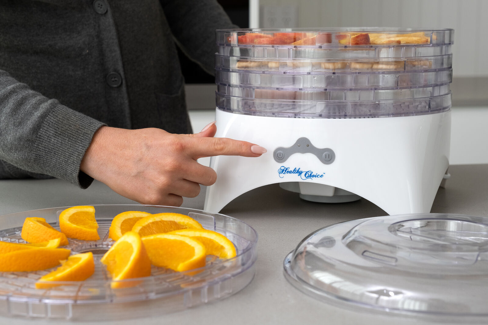 $57.65This Basic Food Dehydrator allows you to prepare and dehydrate a variety of foods with just two simple touch buttons, so you can enjoy the ease of food dehydrating at home. Perfect for food dehydrating beginners, this ‘converge-flow’ drying system eliminates tray rotation, while ensuring the heated air is circulated through all compartments for consistent, even drying across all levels.