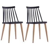This dining chair set which consists of 2 pieces, with a simple yet elegant design, will make a great addition to your dining room or kitchen. The chair seats are made of plastic, which makes them very stable and easy to clean with a damp cloth. The steel legs add extra durability to the dinner chairs. Delivery includes 2 chairs.