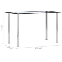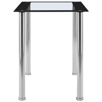 $131.09This dining table, designed with clean and modern lines, will be a great choice for your kitchen, dining room or outdoor dining area. The dinner table has a smooth tempered glass tabletop that is easy to clean with just a damp cloth. The stainless steel frame contributes to its solid construction, bringing great stability and durability. Additionally, the table is easy to assemble.