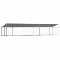 Keep your furry friends in a safe and comfortable space with this dog cage! Versatile use: The versatile dog kennel features multiple uses: playing, exercising, training, or simply keeping your dog safe. It will be the perfect play paradise for your animals!Durable construction: Thanks to the sturdy and heavy-duty galvanised steel construction, the dog pen is durable and built to last.Mesh design: The mesh design of the outdoor dog kennel helps prevent mischief and unexpected accidents while enabling ventilation.Practical roof: The roof of the metal dog crate is made of water-resistant fabric to provide your dog with shade and protection from light rain.Convenient access: The outside dog cage features a lockable door, making it easy to get in and out.