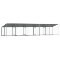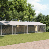 Keep your furry friends in a safe and comfortable space with this dog cage! Versatile use: The versatile dog kennel features multiple uses: playing, exercising, training, or simply keeping your dog safe. It will be the perfect play paradise for your animals!Durable construction: Thanks to the sturdy and heavy-duty galvanised steel construction, the dog pen is durable and built to last.Mesh design: The mesh design of the outdoor dog kennel helps prevent mischief and unexpected accidents while enabling ventilation.Practical roof: The roof of the metal dog crate is made of water-resistant fabric to provide your dog with shade and protection from light rain.Convenient access: The outside dog cage features lockable doors, making it easy to get in and out.