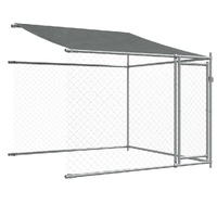 Keep your furry friends in a safe and comfortable space with this dog cage! Versatile use: The versatile dog kennel features multiple uses: playing, exercising, training, or simply keeping your dog safe. It will be the perfect play paradise for your animals!Durable construction: Thanks to the sturdy and heavy-duty galvanised steel construction, the dog pen is durable and built to last.Mesh design: The mesh design of the outdoor dog kennel helps prevent mischief and unexpected accidents while enabling ventilation.Practical roof: The roof of the metal dog crate is made of water-resistant fabric to provide your dog with shade and protection from light rain.Convenient access: The outside dog cage features lockable doors, making it easy to get in and out.