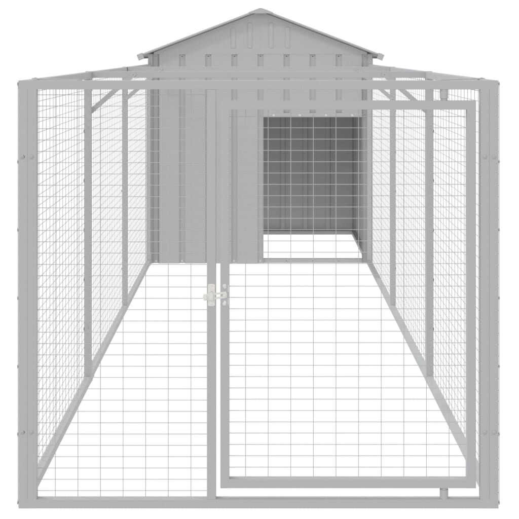 Provide safety and comfort for your furry friends with this dog house with run. Versatile use: Combing with the extended run, the versatile doghouse provides ample space for your pet. It features multiple uses: playing, exercising, training, or simply keeping your puppy safe. It will be the perfect play paradise for your furry friends!Durable construction: Thanks to the sturdy and heavy-duty galvanised steel construction, the dog kennel is durable and built to last.Mesh design: The mesh design of the extended run helps prevent mischief and unexpected accidents while enabling ventilation.Practical roof: The roof of the dog cage protects the puppy from the sun, rain, snow, and other weather conditions.Convenient access: There is an entrance to the animal house and a door with a latch on the extended run, both making it easy to get in and out.