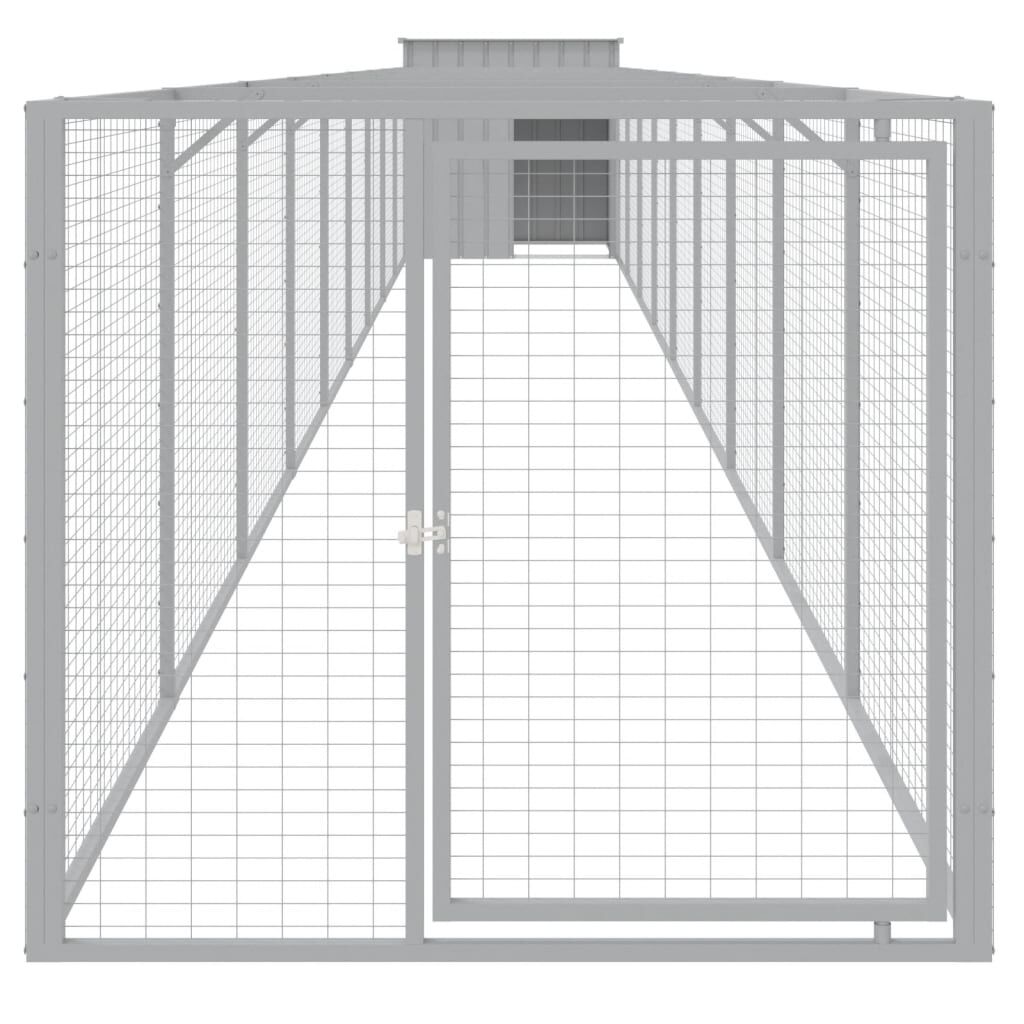 Provide safety and comfort for your furry friends with this dog house with run. Versatile use: Combing with the extended run, the versatile doghouse provides ample space for your pet. It features multiple uses: playing, exercising, training, or simply keeping your puppy safe. It will be the perfect play paradise for your furry friends!Durable construction: Thanks to the sturdy and heavy-duty galvanised steel construction, the dog kennel is durable and built to last.Mesh design: The mesh design of the extended run helps prevent mischief and unexpected accidents while enabling ventilation.Practical roof: The roof of the dog cage protects the puppy from the sun, rain, snow, and other weather conditions.Convenient access: There is an entrance to the animal house and a door with a latch on the extended run, both making it easy to get in and out.