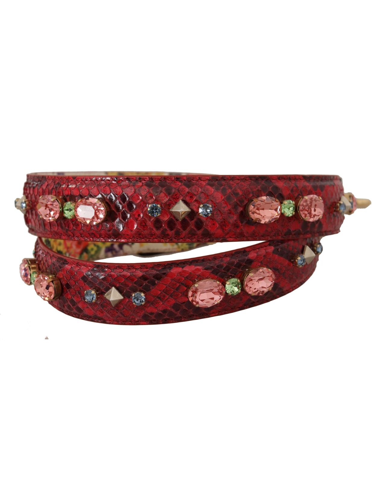 Dolce & Gabbana Women's Red Exotic Leather Crystals Reversible Shoulder Strap - One Size