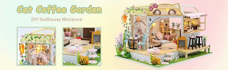 NOW $120.85Dollhouse Miniature with Furniture Kit Plus Dust Proof and Music Movement - Cat Coffee (Valentine's Day Gift Idea)
