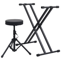 $97.84This adjustable keyboard stand and stool set is ideal companion for your keyboard performance and practice. The keyboard stand is made of rugged steel, making it very durable and stable. And the padded round stool offers you ultimate comfort in your sitting time. With several adjustable working heights, the stand and the stool both could be easily set at the desired height for players of different stature. Thanks to the foldable function, the stand and stool are designed for easy portability and better storage while travelling on the road. Delivery includes one stand and one stool.