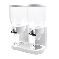 Our Double Cereal Dispenser prevents cereal or other dry foods from going stale. Kids will find it fun turning the knob and watching the cereal fall perfectly into their bowl while moms can be assured that kids will not be spilling cereal all over the kitchen. Best of all, the dispenser is hermetically sealed which preserves the freshness of dry food. Simply place a bowl under the dispenser and twist a knob to get a controlled portion. Transparent cylinder provides a see-through design for a fun mix and match of cereal to create a healthier lifestyle. Available in black or white, get one for your kids to enjoy the cereal and dry food in style!