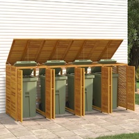$311.50This double garbage bin shed keeps the waste bin in your garden out of your sight and creates a beautiful and clean environment. Solid acacia wood: Solid acacia wood is a beautiful natural material. Acacia wood is a tropical hardwood, which is dense, sturdy, and durable.Considerate design: The doors and the lid allow you to put into and take out the waste bin easily. In addition, the garbage bin box features locks at the front to keep the doors securely closed.Practical design: The wooden garbage bin shed features a metal chain connecting the lid of the waste bin to the lid of the garbage bin box, so when the wooden box is opened, the garbage box opens automatically.