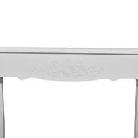 Our console table, featuring a simple yet timeless design, will surely make a great addition to your living room, dining room, hallway, and more. The table features excellent workmanship combined with great functionality. Thanks to its compact design, our console table occupies very little space and fits into smaller areas. And the flower pattern adds a nice touch to the design. This dressing table is constructed from high quality MDF and pinewood with white painted finish for durability, which gives you years of service.