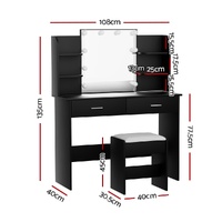 $171.11Feel like a star straight out of Hollywood with the Artiss Dulcea Dressing Table. Packed with generous storage and other convenient features, your new beauty routine will be a breeze. Made from quality MDF particleboard with a melamine finish, the table is built to last. The Hollywood-style makeup mirror is surrounded by bright LED bulbs for the perfect illumination. Choose from warm, neutral and daylight white light so you can always look stage-ready. The vanity features open shelves that you can use to display trinkets or beauty products. Two generous storage drawers with silver handles open smoothly on anti-rust runners, giving you instant access to your beauty essentials. A foam-padded PU leather stool allows you to sit comfortably while applying make-up or skincare and can be neatly tucked away when not in use. Easy to install and even easier to maintain, you'll love getting ready for the day in front of your new Artiss Dulcea Dressing Table.