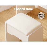 $157.16Feel like a star straight out of Hollywood with the Artiss Doris Dressing Table. Packed with generous storage and other convenient features, your new beauty routine will be a breeze. Made from quality MDF particleboard with a white melamine finish, the table is built to last. The Hollywood-style makeup mirror is surrounded by a bright LED strip for the perfect illumination. Choose from warm, neutral and daylight white light so you can always look stage-ready. The vanity features open shelves that you can use to display trinkets or beauty products. Two generous storage drawers with gold handles open smoothly on anti-rust runners, giving you instant access to your beauty essentials. A foam-padded PU leather stool allows you to sit comfortably while applying make-up or skincare and can be neatly tucked away when not in use. Easy to install and even easier to maintain, you'll love getting ready for the day in front of your new Artiss Doris Dressing Table.