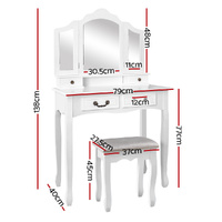 Dressing table dimensions: 79cm x 40cm x 138cm
