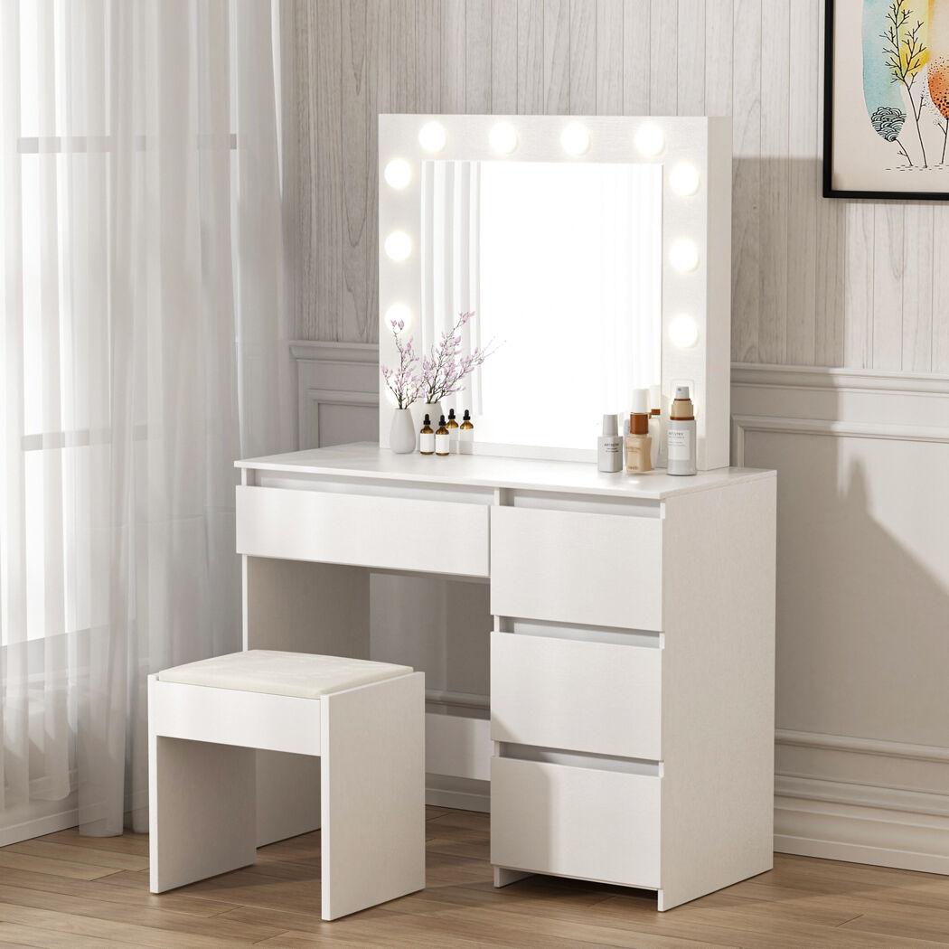 Transform your beauty routine with the Levede Dressing Table Vanity Set, an elegant and practical addition to your bedroom or dressing area. Featuring a 3 LED color mirror with adjustable brightness, this vanity set provides perfect lighting for makeup, skincare, or styling sessions. With its sleek design, ample storage, and comfortable PU-padded stool, this set combines luxury and functionality seamlessly.