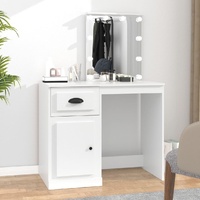 $105.97Featuring refined straight lines and an asymmetrical shape brimming with uniqueness, this dressing table is sure to turn heads! Durable material: The engineered wood is of exceptional quality with smooth surface and also features strength, stability and resistance to moisture.Utility mirror: The makeup table with the mirror is perfect for your daily beauty routine. The mirror allows you to take care of your facial skin and wear your makeup too!Ample storage space: The vanity table provides ample space for easy access to your make-up, jewellery and everyday essentials. Good to know:To make assembly as easy as possible, each product is delivered with a manual. Warning: To prevent it being overturned, this product must be used with the provided wall attachment device.