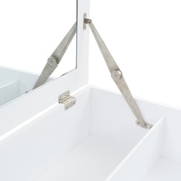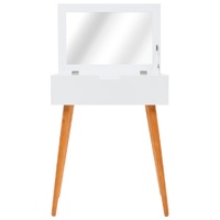 $109.73This dressing table will make a perfect addition to your bedroom or changing room decor with its chic design and clean white finish. This table is made of MDF and has a glass mirror. It features a panel that can be lifted to reveal a mirror and spacious jewellery compartments. It offers plenty of room for your cosmetics, hair products and skincare items. When the mirror is not in use, the tabletop then becomes an ideal place for an array of makeup, jewellery, and beauty supplies. The sturdy wooden legs also add to its stability as well as its mid-century modern style. Assembly is easy.