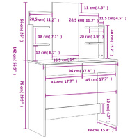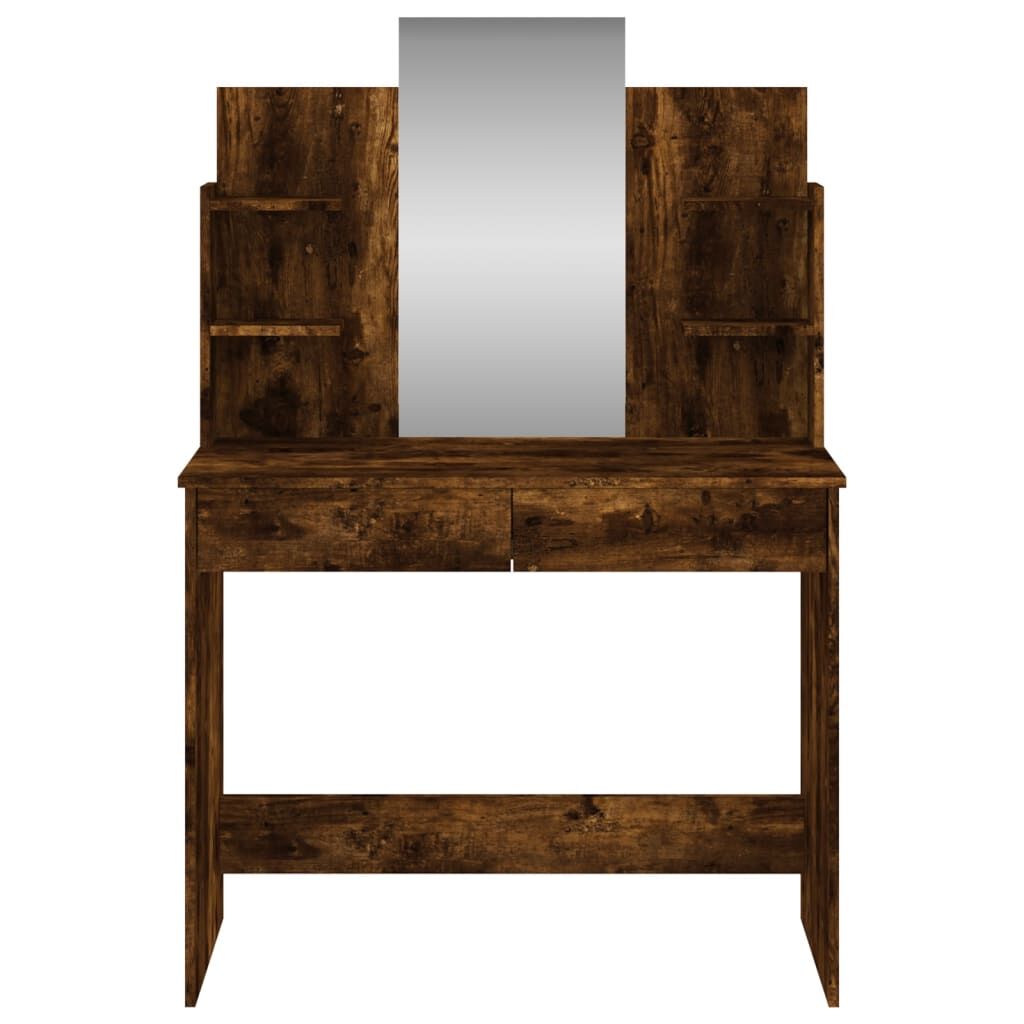 $131.08Featuring a timeless and refined look, the dressing table with mirror is a great addition to your bedroom decor while keeping your cosmetics close at hand! Durable material: The engineered wood is of exceptional quality with smooth surface and also features strength, stability and resistance to moisture. Made of engineered wood, this makeup table is easy to clean.Ample storage: This vanity table features 2 drawers and 4 small shelves, which provide ample space to keep your cosmetic essentials well organised.Utility mirror: The included beautiful mirror provides a clear view for makeup application and adds an elegant touch to the makeup vanity desk. Warning:In order to prevent overturning, this product must be used with the wall attachment device provided.