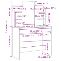 $132.01Featuring a timeless and refined look, the dressing table with mirror is a great addition to your bedroom decor while keeping your cosmetics close at hand! Durable material: The engineered wood is of exceptional quality with smooth surface and also features strength, stability and resistance to moisture. Made of engineered wood, this makeup table is easy to clean.Ample storage: This vanity table features 2 drawers and 4 small shelves, which provide ample space to keep your cosmetic essentials well organised.Utility mirror: The included beautiful mirror provides a clear view for makeup application and adds an elegant touch to the makeup vanity desk. Warning:In order to prevent overturning, this product must be used with the wall attachment device provided.