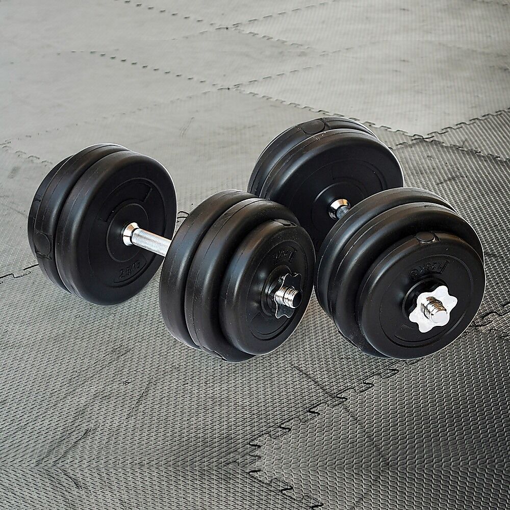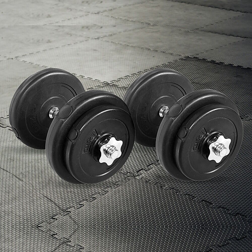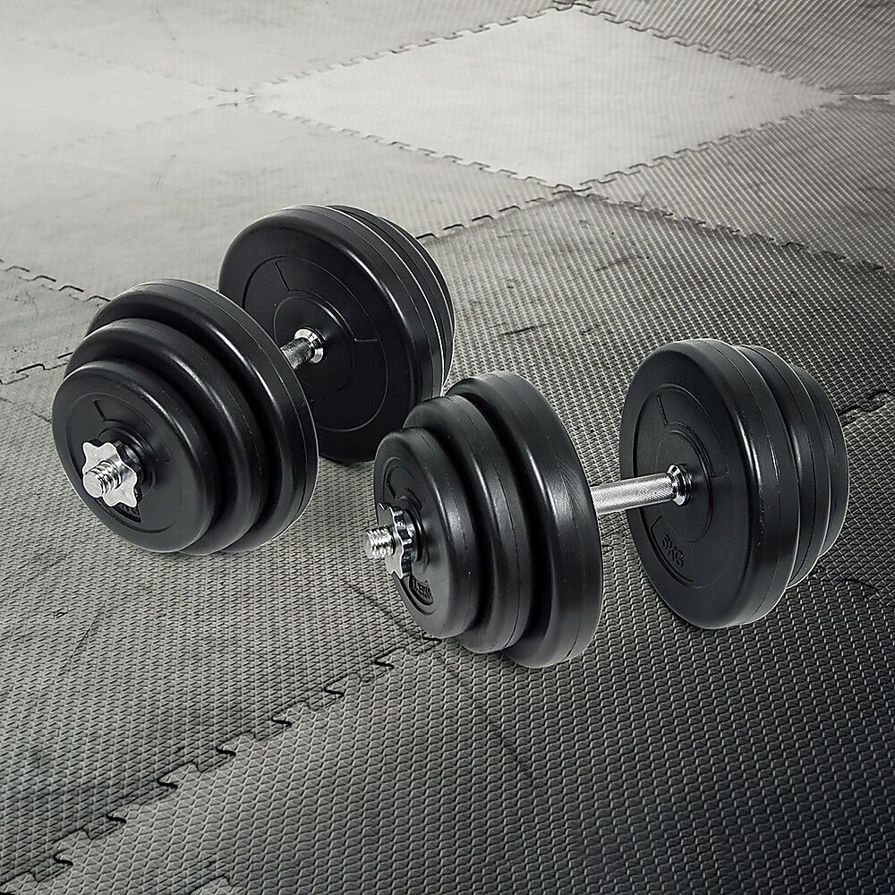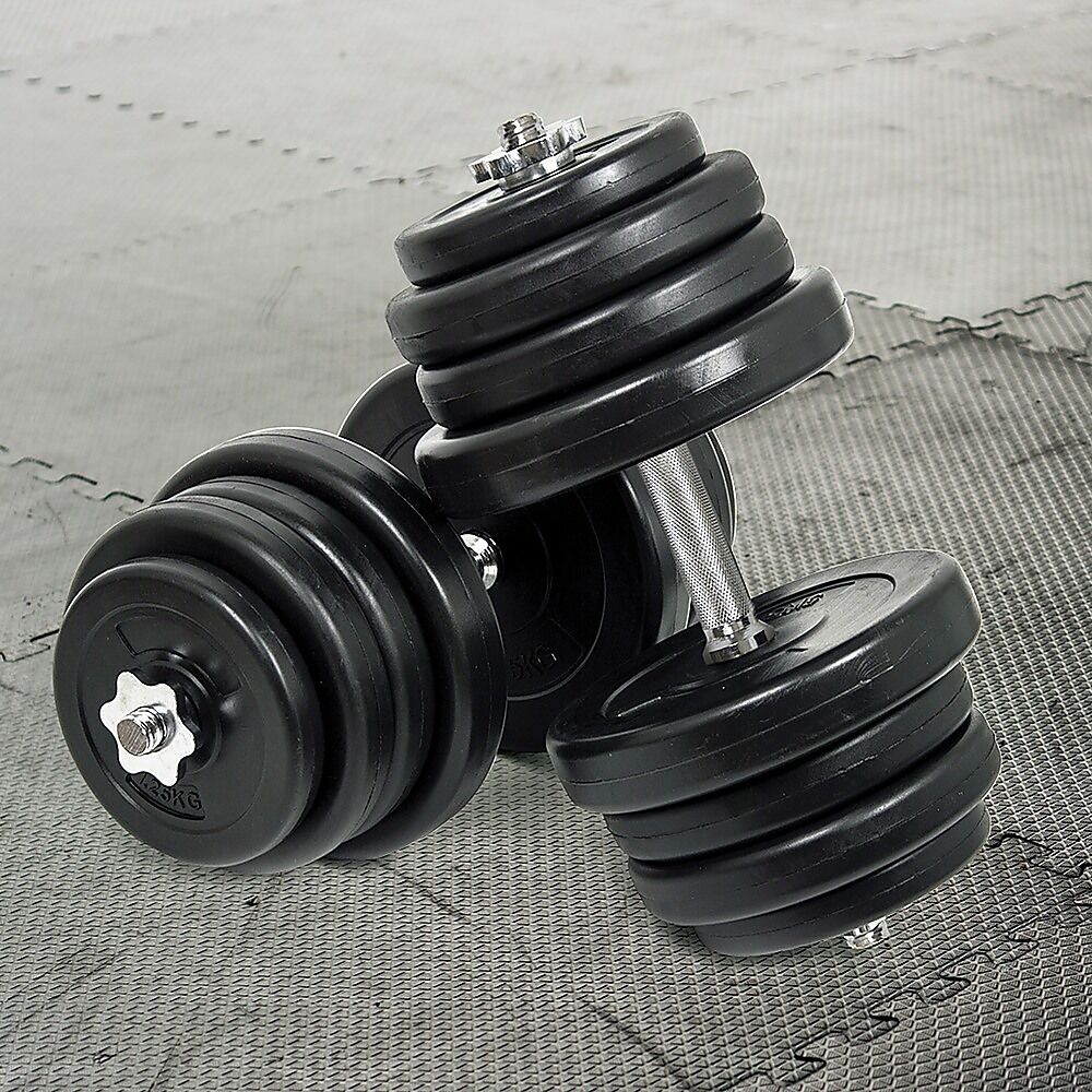 This complete 30kg dumbbell set from Randy Travis Machinery is the perfect addition to your gym or home fitness room. Compact and sturdy, this set includes both dumbbell bars and plates. With a one-year warranty, you can't go wrong with this set. Made from high-quality steel with a non-slip handle, this set allows you to train with confidence without fear of losing your grip.Train your shoulders, biceps, and triceps for better fitness, increased tone, cross training, or to ready yourself for competition.The set comes with twelve plastic-coated cement plates in small increments, so you can increase your load gradually as you build your strength. Star-shaped nuts made from high-quality steel keep the weights in place for easy lifting.Their easy, quick setup allows you to get up and running for your workout. With its handy, compact size, you can store the set easily.
