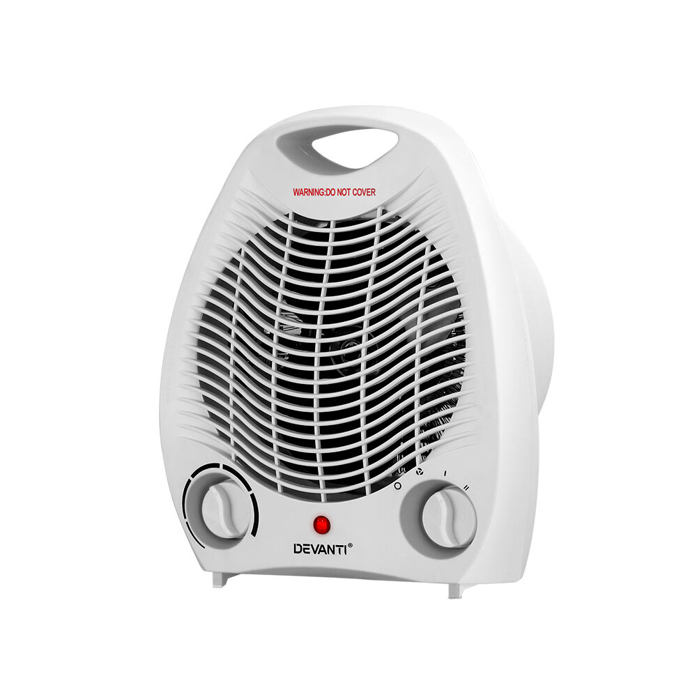 Need a little extra heating to get through winter? The Devanti Fan Heater is here to solve your winter blues. With its high-quality rapid electric wire heating element and fan system, the heater will have you warm in no time at all. It has two heat settings and three unique modes (cool, warm and hot) so you are always at the perfect temperature. Its compact design will fit anywhere from your living room to under your desk, and it features a convenient handle to easily carry your heater from room to room. The thermostat control knob helps you view and maintain the desired temperature. Best of all, the heater has built-in safety features such as a safety cut-off switch in case of tipping and overheating protection. For maximum comfort and warmth through the winter months, you can not go wrong with a Devanti Fan Heater.