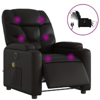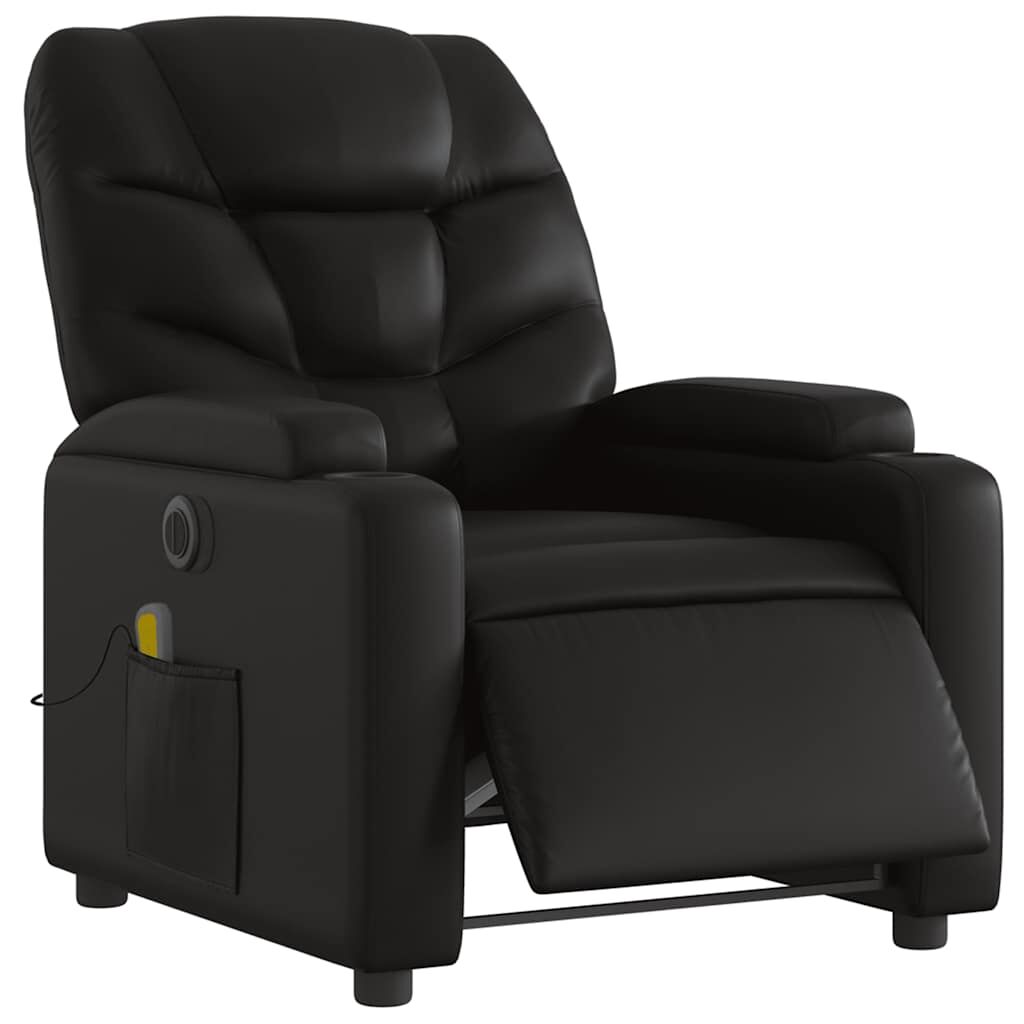 $461.69Sit back and drift away in this highly comfortable electric massage recliner chair! Electric reclining function: This recliner chair is equipped with an electric motor that helps automatically adjust the footrest and backrest to any position as per your comfort with a simple press of the button on the side of the chair. This feature allows for a maximum tilt of 135 degrees. Additionally, the backrest can go automatically back to the original place with an easy press of the button.Vibration function: The featured 6 massage points let you experience a better-targeted massage. Additionally, the included hand control allows you to pick different massage programs. The massage function is powered by the USB connector that requires a certified 5V USB power source (not included).Comfortable seat experience: The thickly padded seat, backrest, and wide armrests covered in faux leather provide a cosy sensation, making you feel embraced while seated. The faux leather is a highly durable material. It is resistant to stain, making it easy to clean with a damp cloth. The smooth surface also gives a luxurious look and the beauty of real leather.Convenient cup holders and side pocket: This armchair has two convenient cup holders for your drinks and a side pocket for your remote control or keeping your essential items within easy reach.Solid and stable frame: The frame made of wood and metal provides a strong structure and stability. This reclining armchair is comfortable and durable.