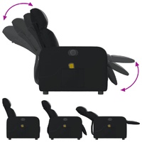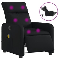NOW $382.22Sit back and drift away in this highly comfortable electric massage recliner chair! Electric reclining function: This recliner chair is equipped with an electric motor that helps automatically adjust the footrest and backrest to any position as per your comfort with a simple press of the button on the side of the chair. This feature allows for a maximum tilt of 135 degrees. Additionally, the backrest can go automatically back to the original place with an easy press of the button.Vibration function: The featured 6 massage points let you experience a better-targeted massage. Additionally, the included hand control allows you to pick different massage programs. The massage function is powered by the USB connector that requires a certified 5V USB power source (not included).Comfortable seat experience: The thickly padded seat, backrest, and wide armrests covered in faux leather provide a cosy sensation, making you feel embraced while seated. The faux leather is a highly durable material. It is resistant to stain, making it easy to clean with a damp cloth. The smooth surface also gives a luxurious look and the beauty of real leather.Convenient side pocket: This armchair has a side pocket for your remote control or keeping your essential items within easy reach.Solid and stable frame: The frame made of wood and metal provides a strong structure and stability. This reclining armchair is comfortable and durable.