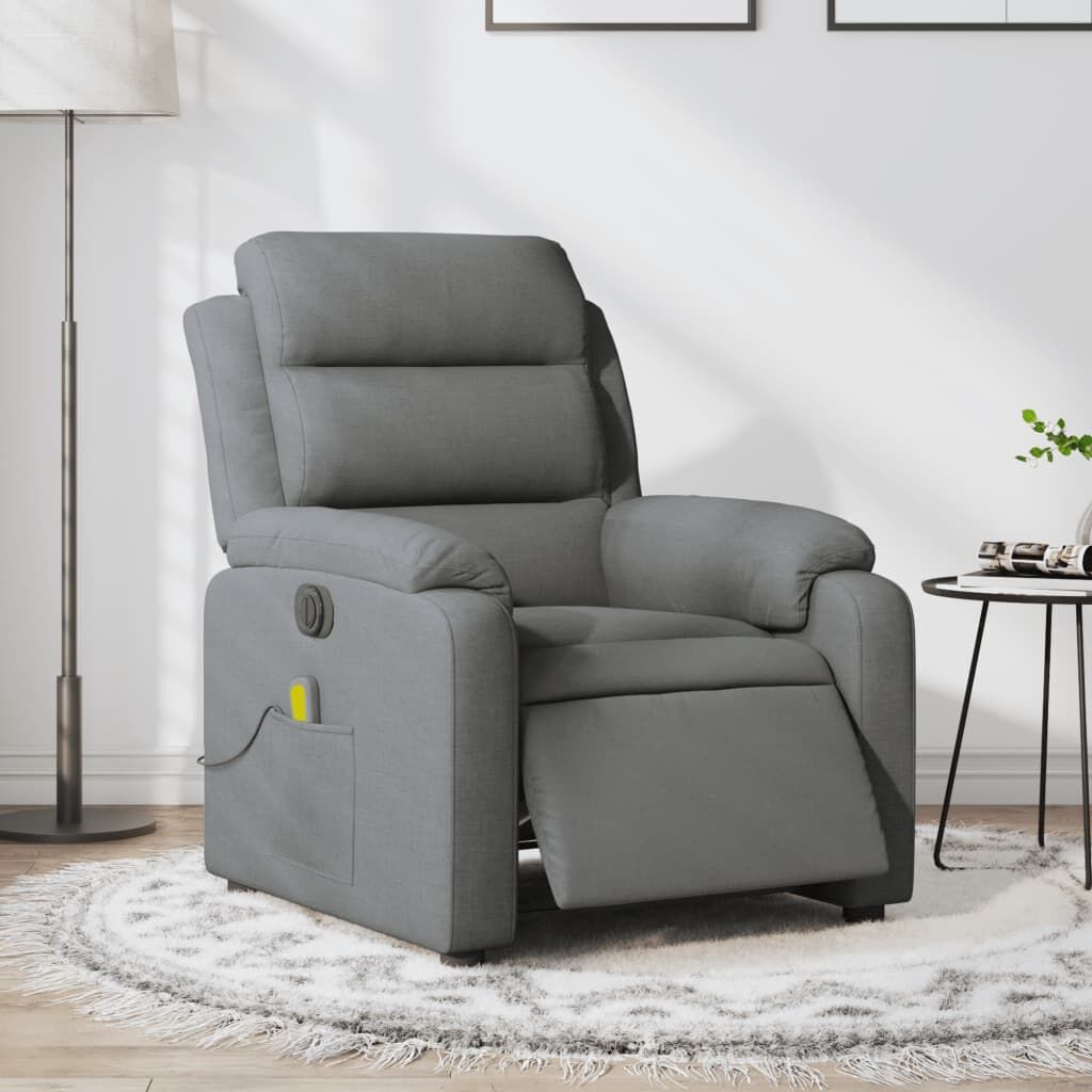 $402.29Sit back and drift away in this highly comfortable electric massage recliner chair! Electric reclining function: This recliner chair is equipped with an electric motor that helps automatically adjust the footrest and backrest to any position as per your comfort with a simple press of the button on the side of the chair. This feature allows for a maximum tilt of 135 degrees. Additionally, the backrest can go automatically back to the original place with an easy press of the button.Vibration function: The featured 6 massage points let you experience a better-targeted massage. Additionally, the included hand control allows you to pick different massage programs. The massage function is powered by the USB connector that requires a certified 5V USB power source (not included).Comfortable seat experience: The thickly padded seat, backrest, and wide armrests covered in fabric provide a cosy and warm sensation, making you feel embraced while seated. The fabric features a simple and clean look and is breathable and durable.Convenient side pocket: This armchair has a side pocket for your remote control or keeping your essential items within easy reach.Solid and stable frame: The frame made of wood and metal provides a strong structure and stability. This reclining armchair is comfortable and durable.