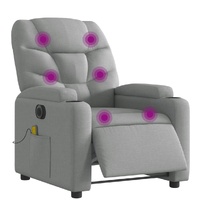 $415.79Sit back and drift away in this highly comfortable electric massage recliner chair! Electric reclining function: This recliner chair is equipped with an electric motor that helps automatically adjust the footrest and backrest to any position as per your comfort with a simple press of the button on the side of the chair. This feature allows for a maximum tilt of 135 degrees. Additionally, the backrest can go automatically back to the original place with an easy press of the button.Vibration function: The featured 6 massage points let you experience a better-targeted massage. Additionally, the included hand control allows you to pick different massage programs. The massage function is powered by the USB connector that requires a certified 5V USB power source (not included).Comfortable seat experience: The thickly padded seat, backrest, and wide armrests covered in fabric provide a cosy and warm sensation, making you feel embraced while seated. The fabric features a simple and clean look and is breathable and durable.Convenient cup holders and side pocket: This armchair has two convenient cup holders for your drinks and a side pocket for your remote control or keeping your essential items within easy reach.Solid and stable frame: The frame made of wood and metal provides a strong structure and stability. This reclining armchair is comfortable and durable.
