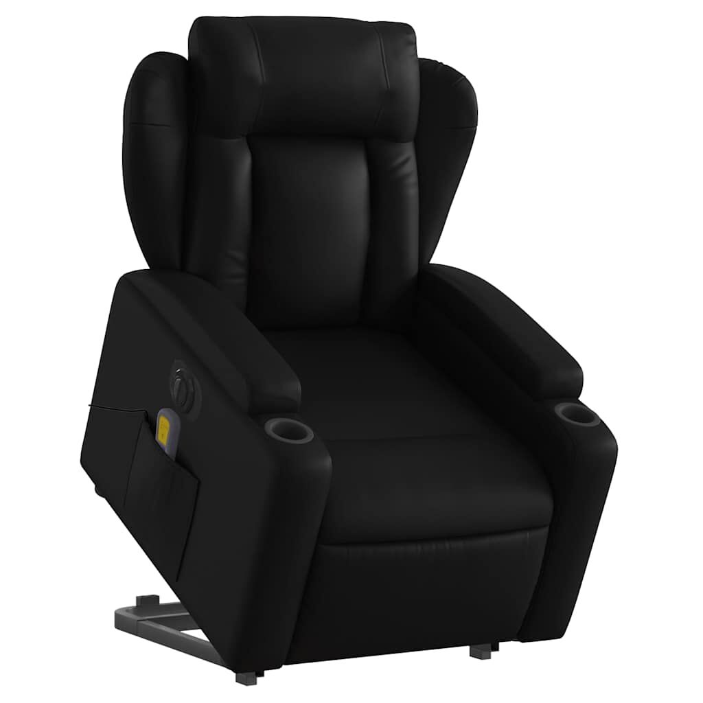 $581.39Sit back and drift away in this highly comfortable electric stand up massage recliner chair! Power lift function: This recliner chair for the elderly is equipped with an electric motor for the lifting-up function. Thanks to the function that pushes the entire chair up, you can easily stand without stressing your back and knees with a simple press of the button.Electric reclining function: This reclining chair is also equipped with an electric motor that helps automatically adjust the footrest and backrest to any position as per your comfort with a simple press of the button on the side of the chair. This feature allows for a maximum tilt of 135 degrees. Additionally, the backrest can go automatically back to the original place with an easy press of the button.Vibration function: The featured 6 massage points let you experience a better-targeted massage. Additionally, the included hand control allows you to pick different massage programs. The massage function is powered by the USB connector that requires a certified 5V USB power source (not included).Comfortable seat experience: The thickly padded seat, backrest, and wide armrests covered in faux leather provide a cosy sensation, making you feel embraced while seated. The faux leather is a highly durable material. It is resistant to stain, making it easy to clean with a damp cloth. The smooth surface also gives a luxurious look and the beauty of real leather.Convenient cup holders and side pocket: This armchair has two convenient cup holders for your drinks and a side pocket for your remote control or keeping your essential items within easy reach.Solid and stable frame: The frame made of wood and metal provides a strong structure and stability. This reclining armchair is comfortable and durable.