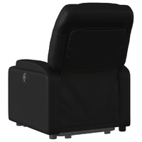 Sit back and drift away in this highly comfortable electric stand up massage recliner chair! Power lift function: This recliner chair for the elderly is equipped with an electric motor for the lifting-up function. Thanks to the function that pushes the entire chair up, you can easily stand without stressing your back and knees with a simple press of the button.Electric reclining function: This reclining chair is also equipped with an electric motor that helps automatically adjust the footrest and backrest to any position as per your comfort with a simple press of the button on the side of the chair. This feature allows for a maximum tilt of 135 degrees. Additionally, the backrest can go automatically back to the original place with an easy press of the button.Vibration function: The featured 6 massage points let you experience a better-targeted massage. Additionally, the included hand control allows you to pick different massage programs. The massage function is powered by the USB connector that requires a certified 5V USB power source (not included).Comfortable seat experience: The thickly padded seat, backrest, and wide armrests covered in faux leather provide a cosy sensation, making you feel embraced while seated. The faux leather is a highly durable material. It is resistant to stain, making it easy to clean with a damp cloth. The smooth surface also gives a luxurious look and the beauty of real leather.Convenient cup holders and side pocket: This armchair has two convenient cup holders for your drinks and a side pocket for your remote control or keeping your essential items within easy reach.Solid and stable frame: The frame made of wood and metal provides a strong structure and stability. This reclining armchair is comfortable and durable.