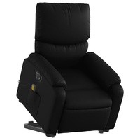 Sit back and drift away in this highly comfortable electric stand up massage recliner chair! Power lift function: This recliner chair for the elderly is equipped with an electric motor for the lifting-up function. Thanks to the function that pushes the entire chair up, you can easily stand without stressing your back and knees with a simple press of the button.Electric reclining function: This reclining chair is also equipped with an electric motor that helps automatically adjust the footrest and backrest to any position as per your comfort with a simple press of the button on the side of the chair. This feature allows for a maximum tilt of 135 degrees. Additionally, the backrest can go automatically back to the original place with an easy press of the button.Vibration function: The featured 6 massage points let you experience a better-targeted massage. Additionally, the included hand control allows you to pick different massage programs. The massage function is powered by the USB connector that requires a certified 5V USB power source (not included).Comfortable seat experience: The thickly padded seat, backrest, and wide armrests covered in faux leather provide a cosy sensation, making you feel embraced while seated. The faux leather is a highly durable material. It is resistant to stain, making it easy to clean with a damp cloth. The smooth surface also gives a luxurious look and the beauty of real leather.Convenient side pocket: This armchair has a side pocket for your remote control or keeping your essential items within easy reach.Solid and stable frame: The frame made of wood and metal provides a strong structure and stability. This reclining armchair is comfortable and durable.