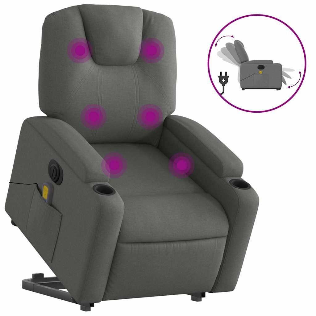 $523.79Sit back and drift away in this highly comfortable electric stand up massage recliner chair! Power lift function: This recliner chair for the elderly is equipped with an electric motor for the lifting-up function. Thanks to the function that pushes the entire chair up, you can easily stand without stressing your back and knees with a simple press of the button. Electric reclining function: This reclining chair is also equipped with an electric motor that helps automatically adjust the footrest and backrest to any position as per your comfort with a simple press of the button on the side of the chair. This feature allows for a maximum tilt of 135 degrees. Additionally, the backrest can go automatically back to the original place with an easy press of the button. Vibration function: The featured 6 massage points let you experience a better-targeted massage. Additionally, the included hand control allows you to pick different massage programs. The massage function is powered by the USB connector that requires a certified 5V USB power source (not included). Comfortable seat experience: The thickly padded seat, backrest, and wide armrests covered in fabric provide a cosy and warm sensation, making you feel embraced while seated. The fabric features a simple and clean look and is breathable and durable. Convenient cup holders and side pocket: This armchair has two convenient cup holders for your drinks and a side pocket for your remote control or keeping your essential items within easy reach. Solid and stable frame: The frame made of wood and metal provides a strong structure and stability. This reclining armchair is comfortable and durable.
