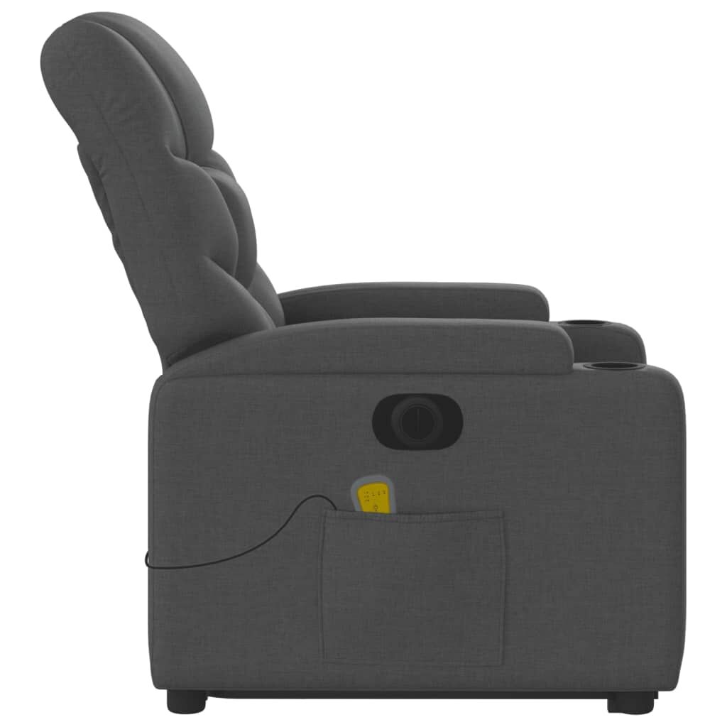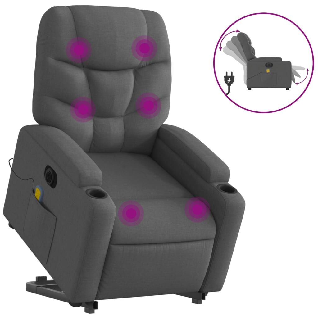 $565.19Sit back and drift away in this highly comfortable electric stand up massage recliner chair! Power lift function: This recliner chair for the elderly is equipped with an electric motor for the lifting-up function. Thanks to the function that pushes the entire chair up, you can easily stand without stressing your back and knees with a simple press of the button.Electric reclining function: This reclining chair is also equipped with an electric motor that helps automatically adjust the footrest and backrest to any position as per your comfort with a simple press of the button on the side of the chair. This feature allows for a maximum tilt of 135 degrees. Additionally, the backrest can go automatically back to the original place with an easy press of the button.Vibration function: The featured 6 massage points let you experience a better-targeted massage. Additionally, the included hand control allows you to pick different massage programs. The massage function is powered by the USB connector that requires a certified 5V USB power source (not included).Comfortable seat experience: The thickly padded seat, backrest, and wide armrests covered in fabric provide a cosy and warm sensation, making you feel embraced while seated. The fabric features a simple and clean look and is breathable and durable.Convenient cup holders and side pocket: This armchair has two convenient cup holders for your drinks and a side pocket for your remote control or keeping your essential items within easy reach.Solid and stable frame: The frame made of wood and metal provides a strong structure and stability. This reclining armchair is comfortable and durable.