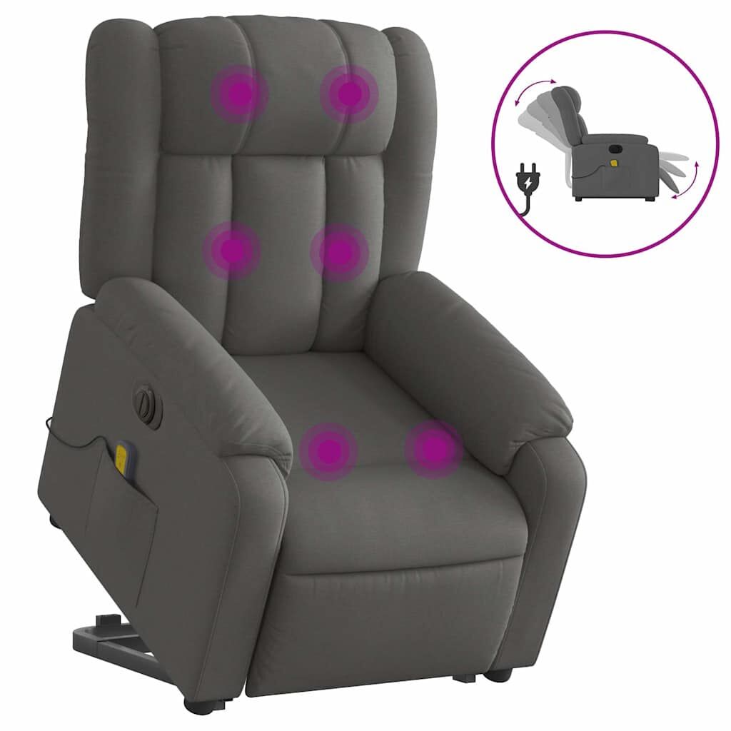$533.69Sit back and drift away in this highly comfortable electric stand up massage recliner chair! Power lift function: This recliner chair for the elderly is equipped with an electric motor for the lifting-up function. Thanks to the function that pushes the entire chair up, you can easily stand without stressing your back and knees with a simple press of the button.Electric reclining function: This reclining chair is also equipped with an electric motor that helps automatically adjust the footrest and backrest to any position as per your comfort with a simple press of the button on the side of the chair. This feature allows for a maximum tilt of 135 degrees. Additionally, the backrest can go automatically back to the original place with an easy press of the button.Vibration function: The featured 6 massage points let you experience a better-targeted massage. Additionally, the included hand control allows you to pick different massage programs. The massage function is powered by the USB connector that requires a certified 5V USB power source (not included).Comfortable seat experience: The thickly padded seat, backrest, and wide armrests covered in fabric provide a cosy and warm sensation, making you feel embraced while seated. The fabric features a simple and clean look and is breathable and durable.Convenient side pocket: This armchair has a side pocket for your remote control or keeping your essential items within easy reach.Solid and stable frame: The frame made of wood and metal provides a strong structure and stability. This reclining armchair is comfortable and durable.