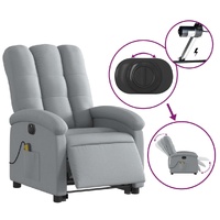 $503.99Sit back and drift away in this highly comfortable electric stand up massage recliner chair! Power lift function: This recliner chair for the elderly is equipped with an electric motor for the lifting-up function. Thanks to the function that pushes the entire chair up, you can easily stand without stressing your back and knees with a simple press of the button. Electric reclining function: This reclining chair is also equipped with an electric motor that helps automatically adjust the footrest and backrest to any position as per your comfort with a simple press of the button on the side of the chair. This feature allows for a maximum tilt of 135 degrees. Additionally, the backrest can go automatically back to the original place with an easy press of the button. Vibration function: The featured 6 massage points let you experience a better-targeted massage. Additionally, the included hand control allows you to pick different massage programs. The massage function is powered by the USB connector that requires a certified 5V USB power source (not included). Comfortable seat experience: The thickly padded seat, backrest, and wide armrests covered in fabric provide a cosy and warm sensation, making you feel embraced while seated. The fabric features a simple and clean look and is breathable and durable. Convenient side pocket: This armchair has a side pocket for your remote control or keeping your essential items within easy reach. Solid and stable frame: The frame made of wood and metal provides a strong structure and stability. This reclining armchair is comfortable and durable.