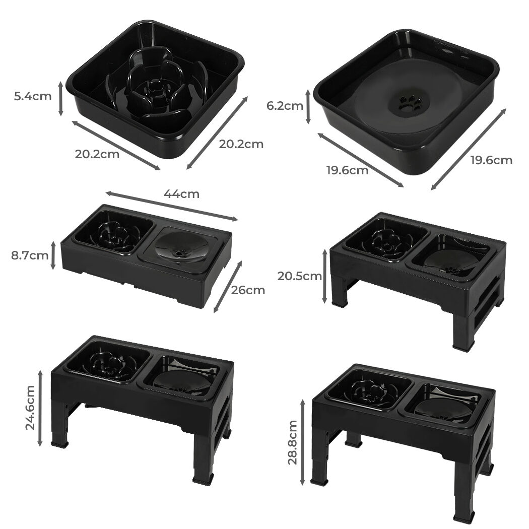 Choose between 4 heights with your dog water bowl and dog food bowl. Tip the stand over to adjust the legs. Perfect for kittens all the way to Great Danes.