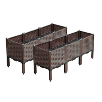 • Raised Garden Bed has a SELF-WATERING PATTERN. Designed in a way that you conserve water - stop the water leaking, seeping, or evaporating so you, in turn, less usage. It has a water barrier & bottom board design, filtering excess from the soil and storing it in the bottom boards - helping plants absorb water and nutrition completely. Drains holes with small buttons providing good breathability for plant growth and drains excess water when needed.