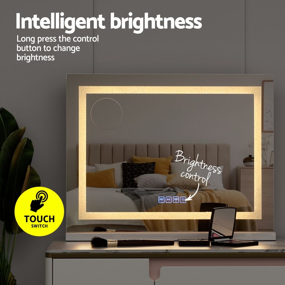 $89.27Get the star treatment you deserve with a gorgeous lighted Makeup Mirror from Embellir. Framed by LED light strips, the mirror lights up your visage to accurately complete your makeup routine. The frame is sturdy and lightweight, adding a touch of glamour to the entire mirror. The frame sits on an equally smooth powder-coated MDF base for stability and durability. The base is detachable, so you can choose to wall mount your mirror and save space. The light is easily adjustable using the mirror touch controls. Adjust for brightness and colour temperature including warm light, natural light and cool light. A built-in Bluetooth speaker allows you to listen to your favourite audiobooks, music and podcasts as you go, and the USB charging port can help keep your devices charged at all times. Turn your bedroom into a celebrity dressing room overnight with the Embellir Makeup Mirror.