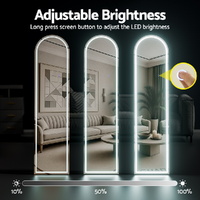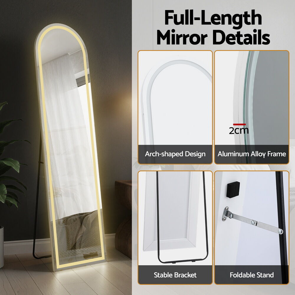 Elevate your space with the Embellir Full-Length LED Mirror. This elegant arch mirror features an adjustable LED light with three colour temperatures and stepless dimmable brightness control. Use it as a freestanding mirror, or easily mount it on the wall. Crafted with high-definition shatterproof glass, this wall mirror provides a clear, full-body view. Its modern design makes it a must-have dorm essential and a perfect piece of wall art for home decor for your bedroom or living room decor.