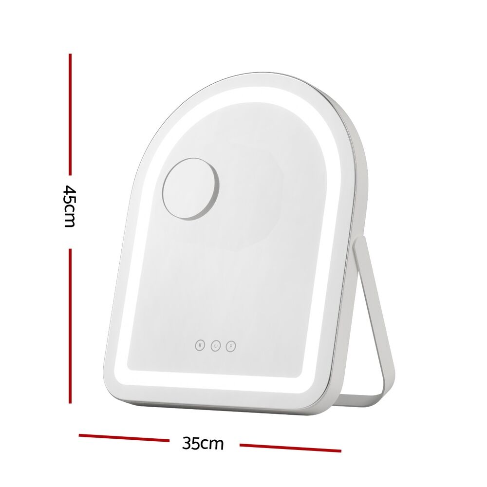 This illuminated makeup mirror combines professional functionality with everyday convenience, featuring a 5x magnification detachable magnetic mirror for detailed makeup application, tweezing, and skincare routines. The touch-sensitive LED lighting offers three colour temperatures (cool white, daylight, warm light) to suit any environment, ensuring flawless makeup in any lighting condition.