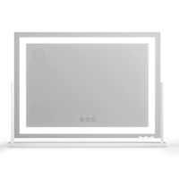 The Embellir Makeup Mirror features an extra-large 80x58cm surface with bright LED light strip illumination. Choose from 3 professional colour temperatures (warm/neutral/cool) with fully adjustable brightness for perfect visibility. The 360~ swivel base allows ideal positioning, while the side USB port offers convenient charging. Includes bonus phone holder and 10x magnifier - ideal for professional makeup application or home vanity use.