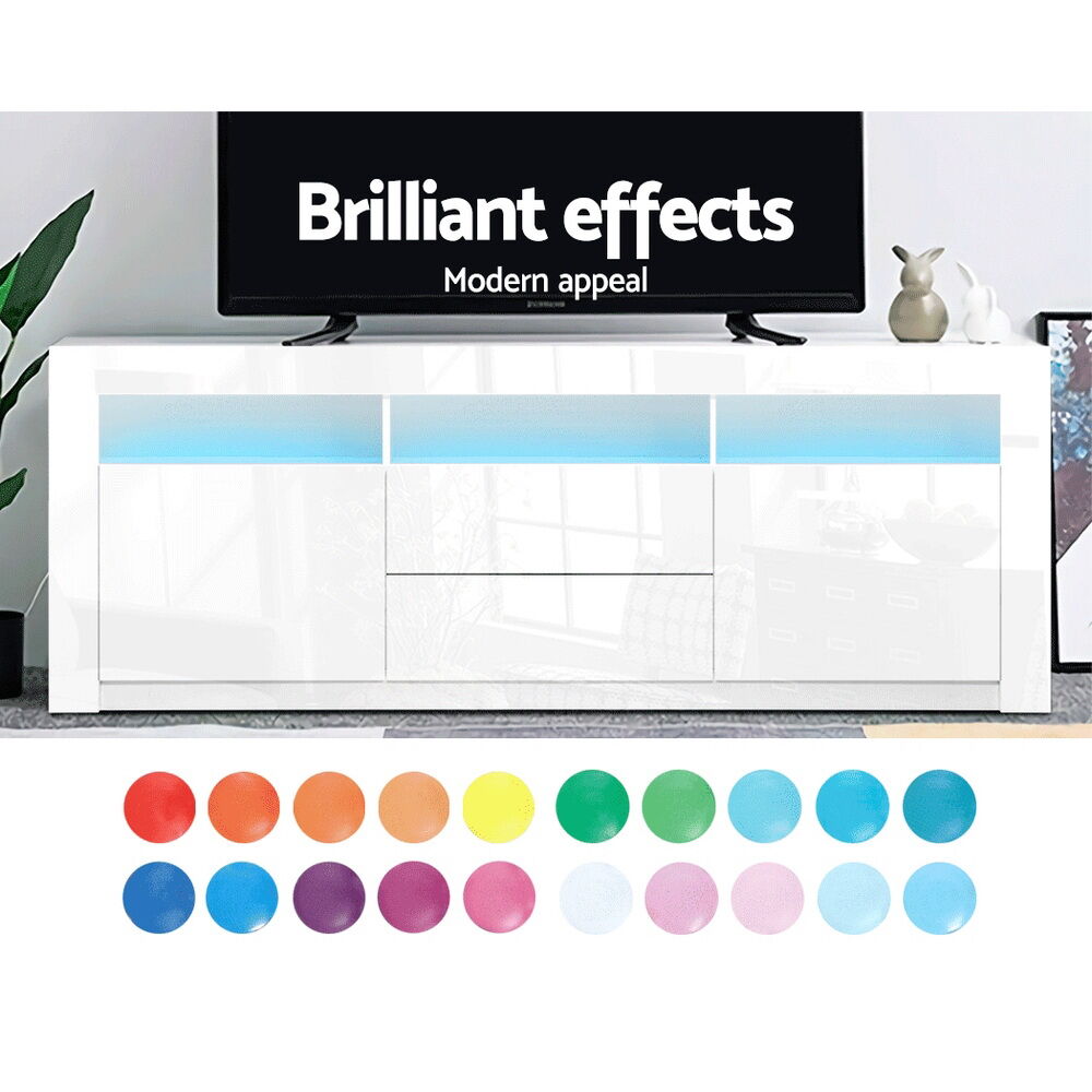 $154.37Now you can even watch television or play video games in style with our Artiss LED Entertainment Unit. The unit comes with built-in LED lighting that can be customised into 20 different colours and 5 different effects to suit your preference. You can even adjust the speed of the lighting effects. Not only does the entertainment unit create a beautiful ambience, it is certain to be a showstopper that will wow all your houseguests. The unit will be the perfect addition for your modern living room with its contemporary and linear design. The two drawers and two cabinets have a handle-less design to maintain the sleek appearance and along with the three open shelves, provide ample storage for all your entertainment paraphernalia.
