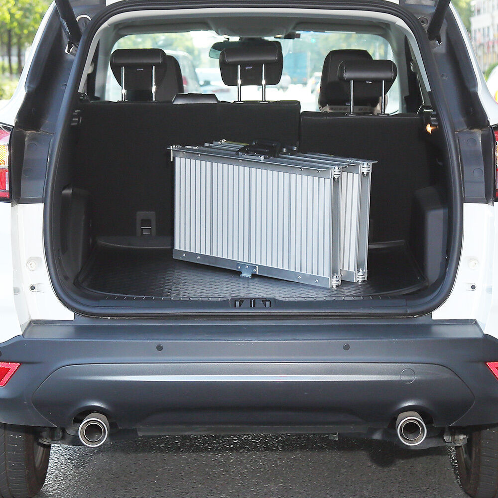 Equipmed ramps are expertly machine welded with non-slip serrated slats and side rails for peace of mind. The ramp comes complete with 2 x locking pins that keep it folded when carrying.