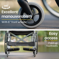 This Equipmed folding wheelchair certainly ticks all the boxes. Make the smart choice and enjoy well-deserved mobility!