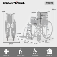This Equimed wheel chair features height adjustable footrests that also swing out for easy access onto the wheel chair. Comfy padded armrests and a padded seat with generously proportioned backrest ensure a comfortable ride. The armrests have quick release levers which allow them to swing back to allow for convenient access at tables when dining. And, thanks to the 2 second folding action and ergonomic handles, it makes for a relaxing day out for any helpers, too!
