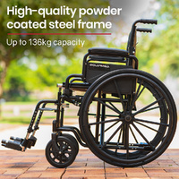 $297.59Practicality, reliability and comfort is required to provide well deserved freedom and confidence. This premium wheelchair has a sporty and sturdy powder-coated steel design that can hold up to 136kg.