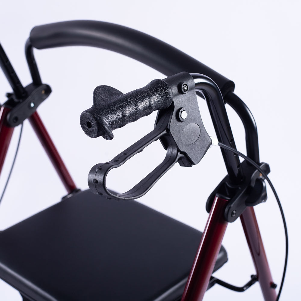 With dual-action braking and parking handbrakes, adjustable handle height, ridged grips, padded seating and a padded contoured backrest, your Equipmed rollator offers great ergonomics and comfort.