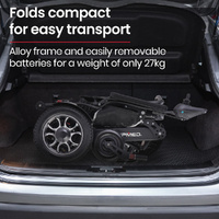 The Equipmed motorised wheelchair is quick to fold. Plus, an alloy frame and easy-to-remove lithium battery mean that it is as light as possible for loading into a car boot or moving into a space-saving storage position.