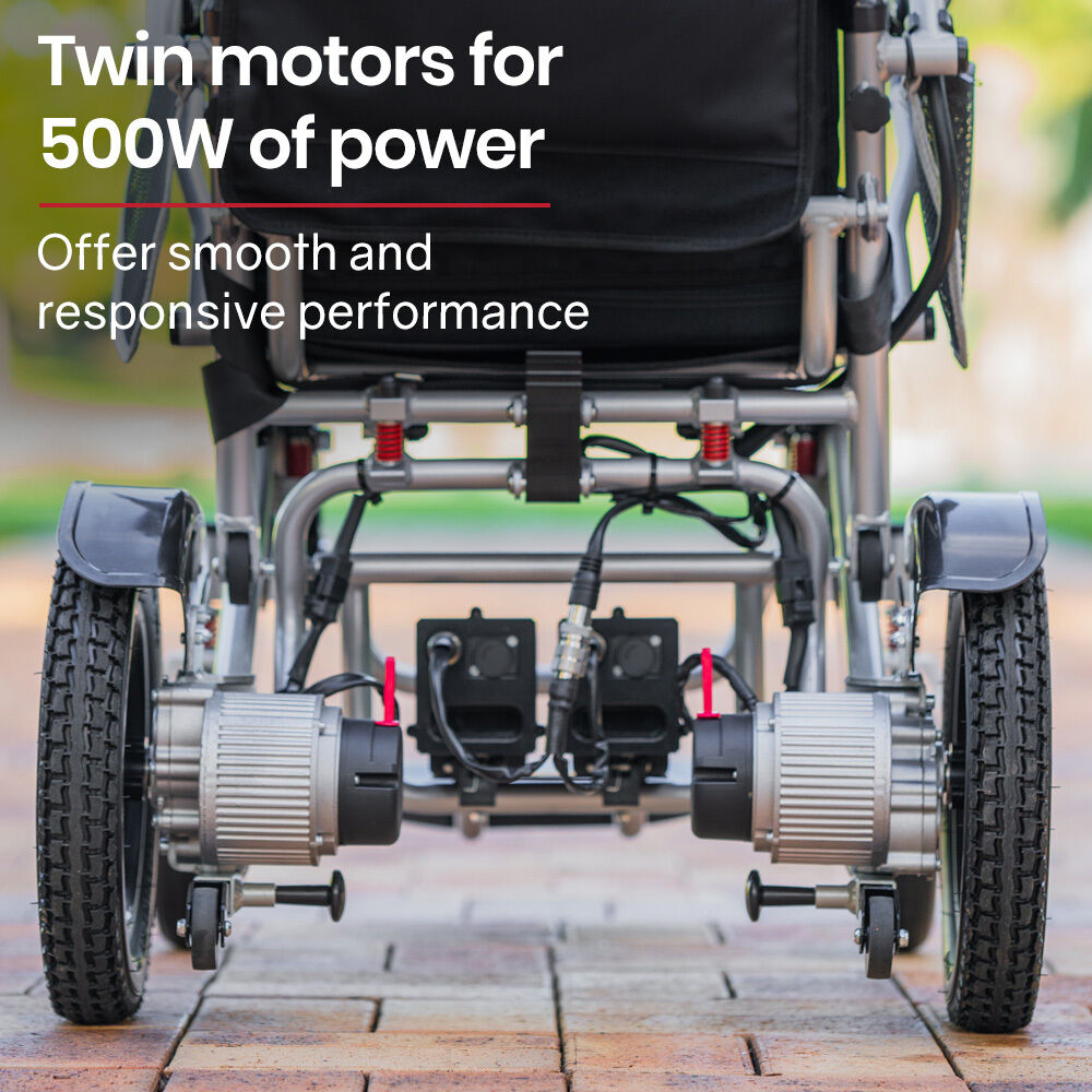 Twin motors offering a total of 500 watts offer an enjoyable riding experience with smooth and responsive performance, not to mention the ability to climb hills and ramps right up to a 15-degree incline! A tight 1m turning circle offers the manoeuvrability you need on paths and in places like shopping centres and airports.
